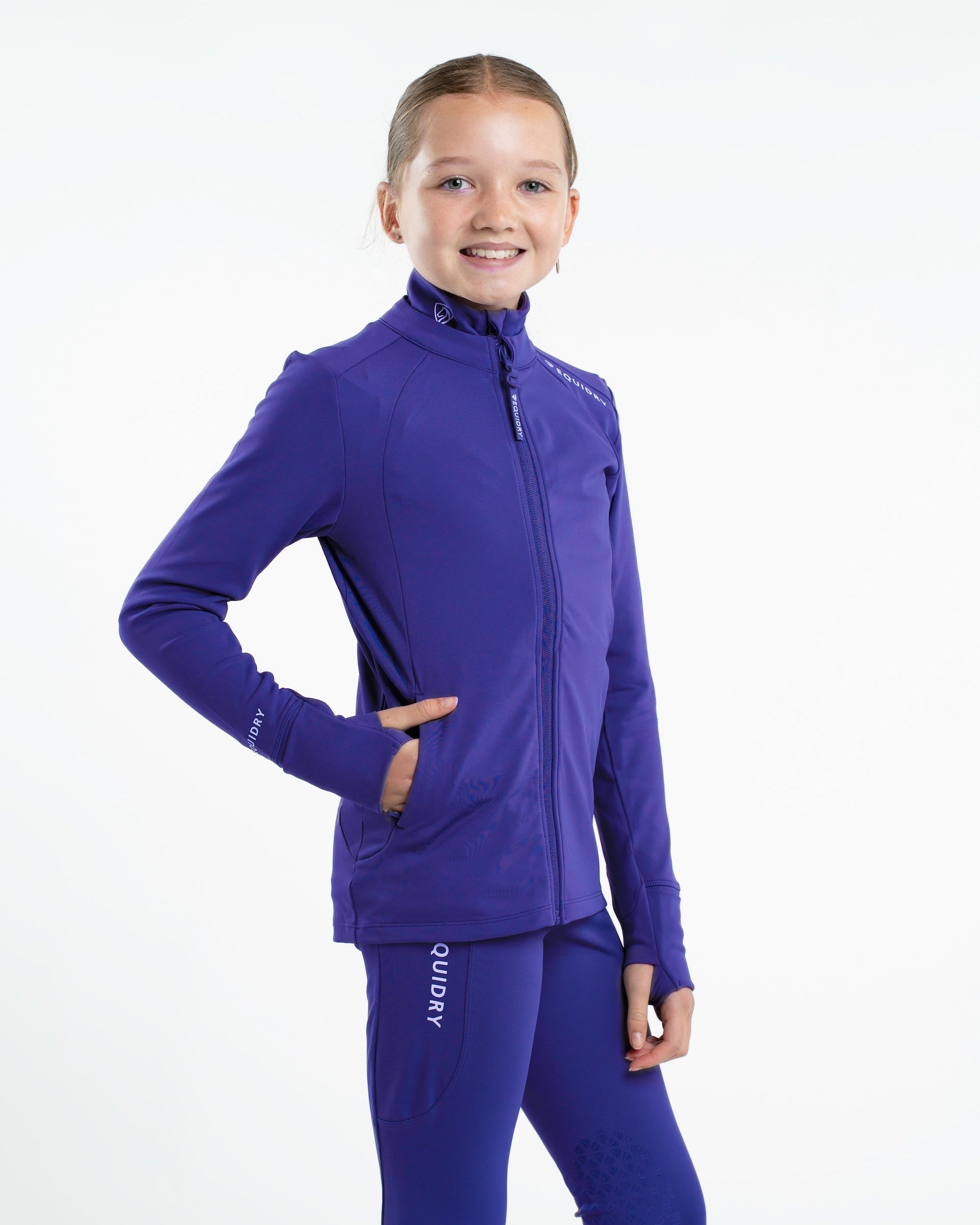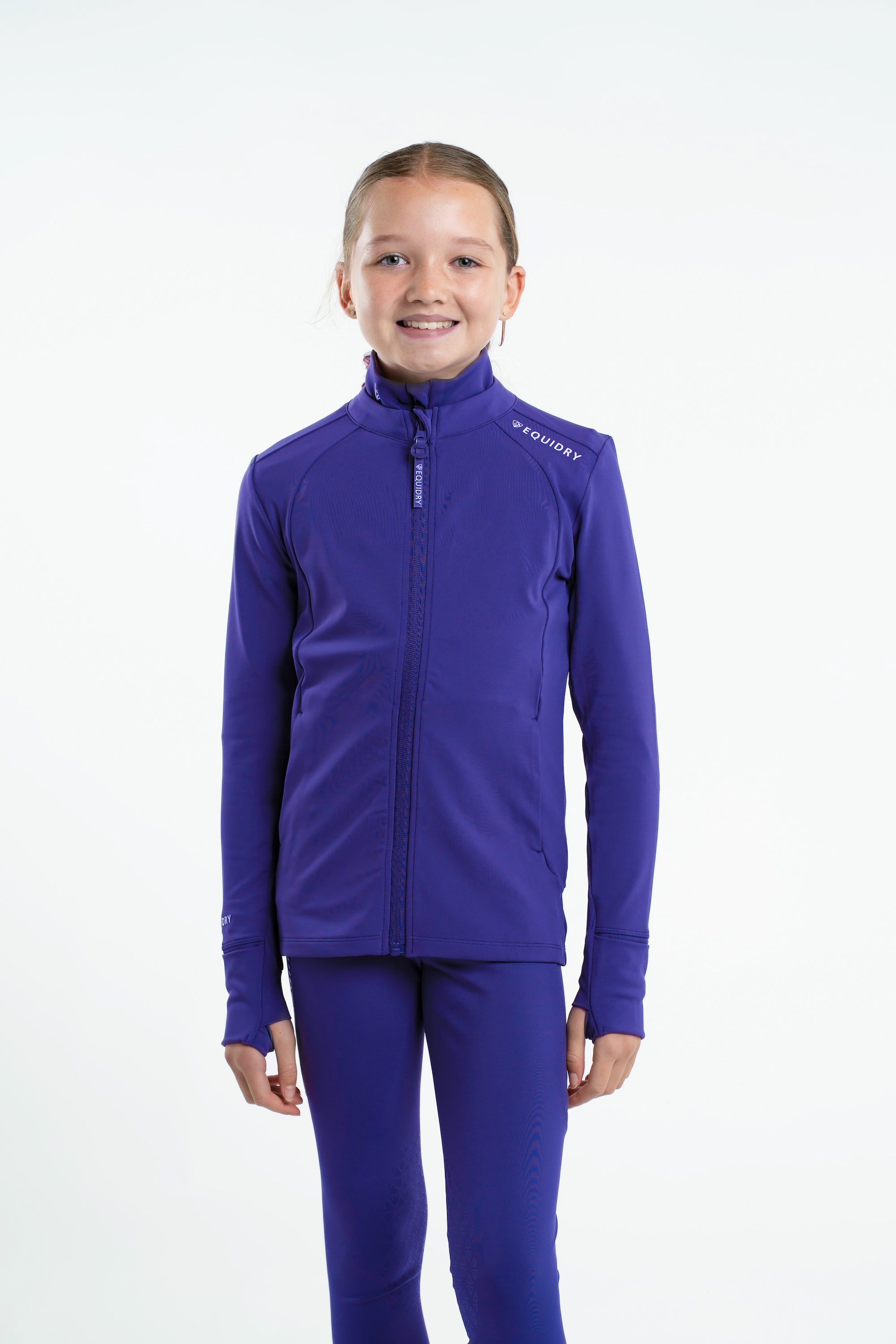 The EQUIDRY Zip-Up Top pairs perfectly with our range of water-repellent leggings and base layers, creating a complete, coordinated look. With its stylish and practical design, it's the perfect addition to any active child's wardrobe.