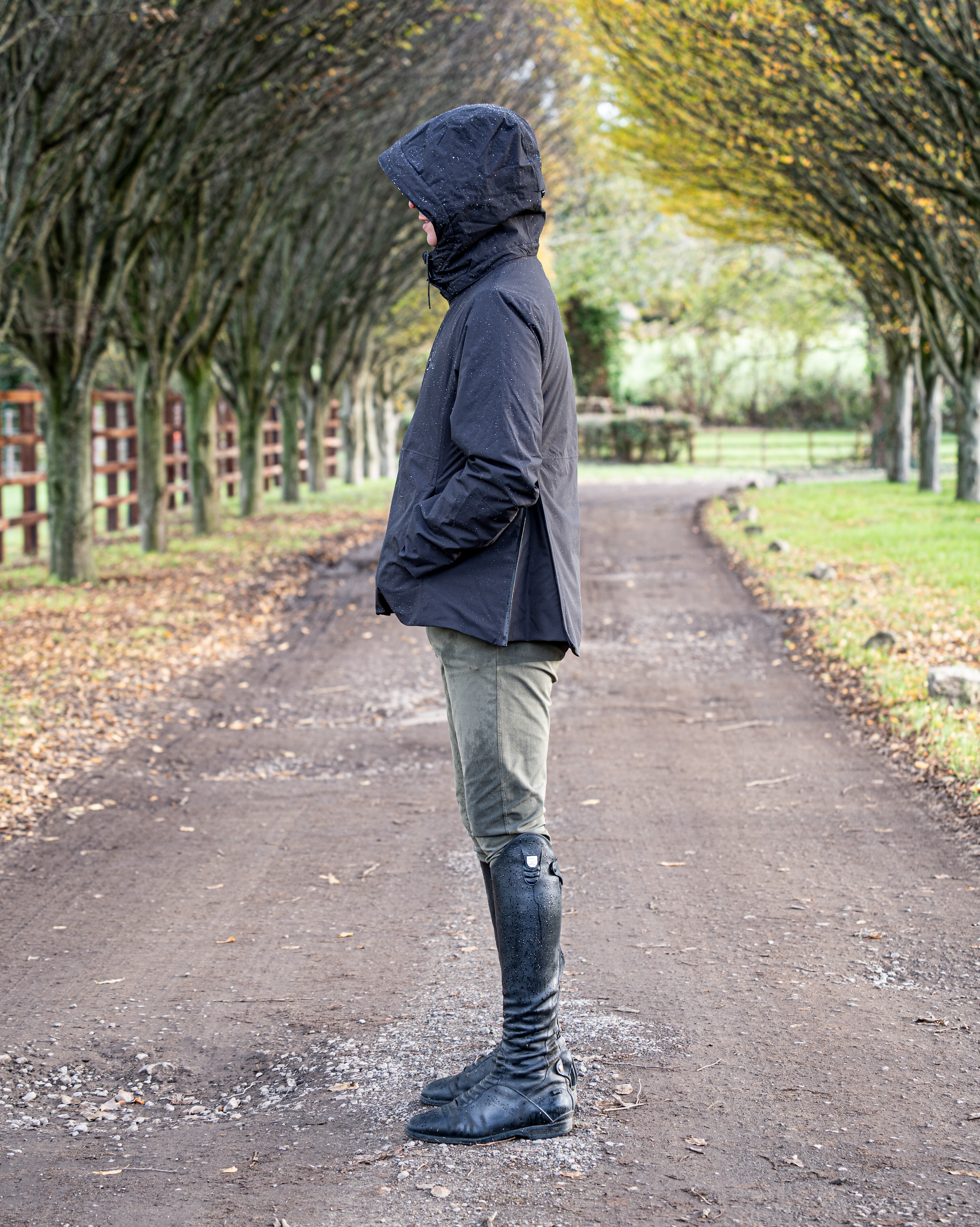The EQUIDRY Iris Jacket is a lightweight, waterproof, and windproof layer offering 20,000mm protection and 7,000 breathability. Stylish yet practical, it features a matte ripstop outer, removable hood, and discreet vents for comfort and movement, perfect for riding or everyday wear.