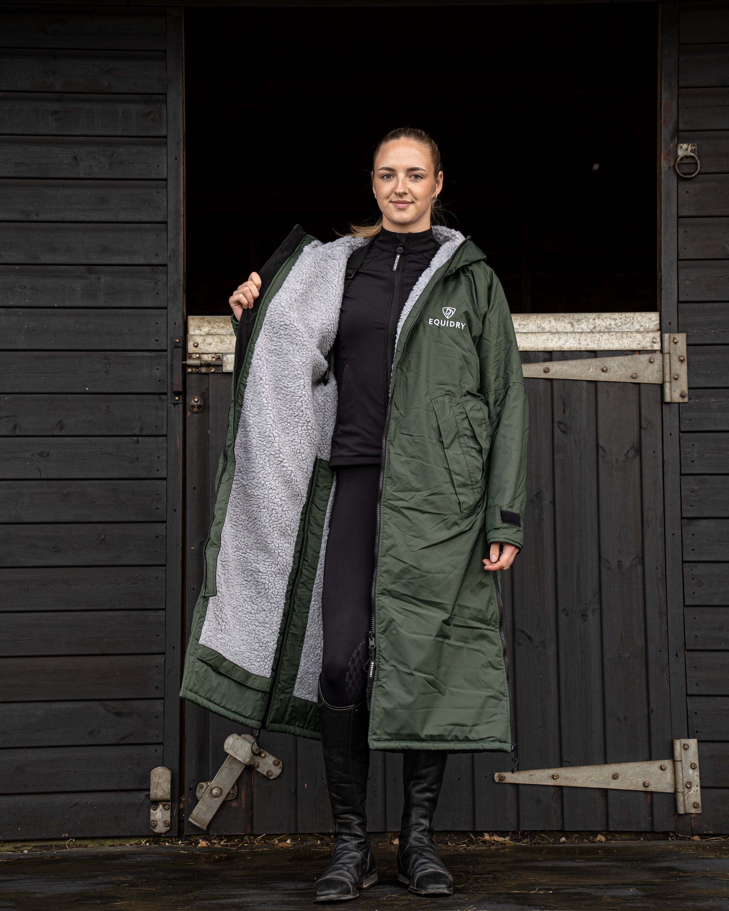 The EQUIDRY Original All Rounder has been designed to be oversized, which allows it to easily fit over the top of body protectors, competition wear and other clothing, and is a long-length coat, ensuring full body coverage. Riders love these jackets, but they are also the perfect companion for anyone who loves the great outdoors. Whether you are watching friends at a show, working around the yard, walking the dogs or going for a hike across the moors, the EQUIDRY Original All Rounder is a must-have to keep you warm, dry and comfortable!