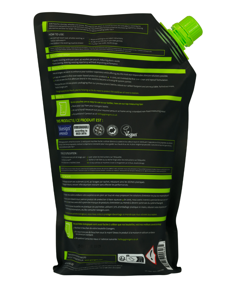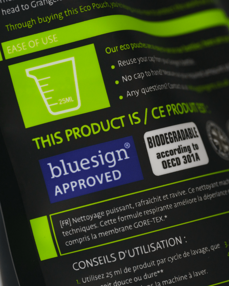 The Performance Wash 1L Eco Pouch is a gentle yet powerful cleaner, bluesign® approved and PFC-free, designed specifically for technical and outdoor garments like your EQUIDRY collection. Its 100% recyclable eco pouch uses 72% less plastic than standard 1L bottles, helping protect the world we all love to explore.
