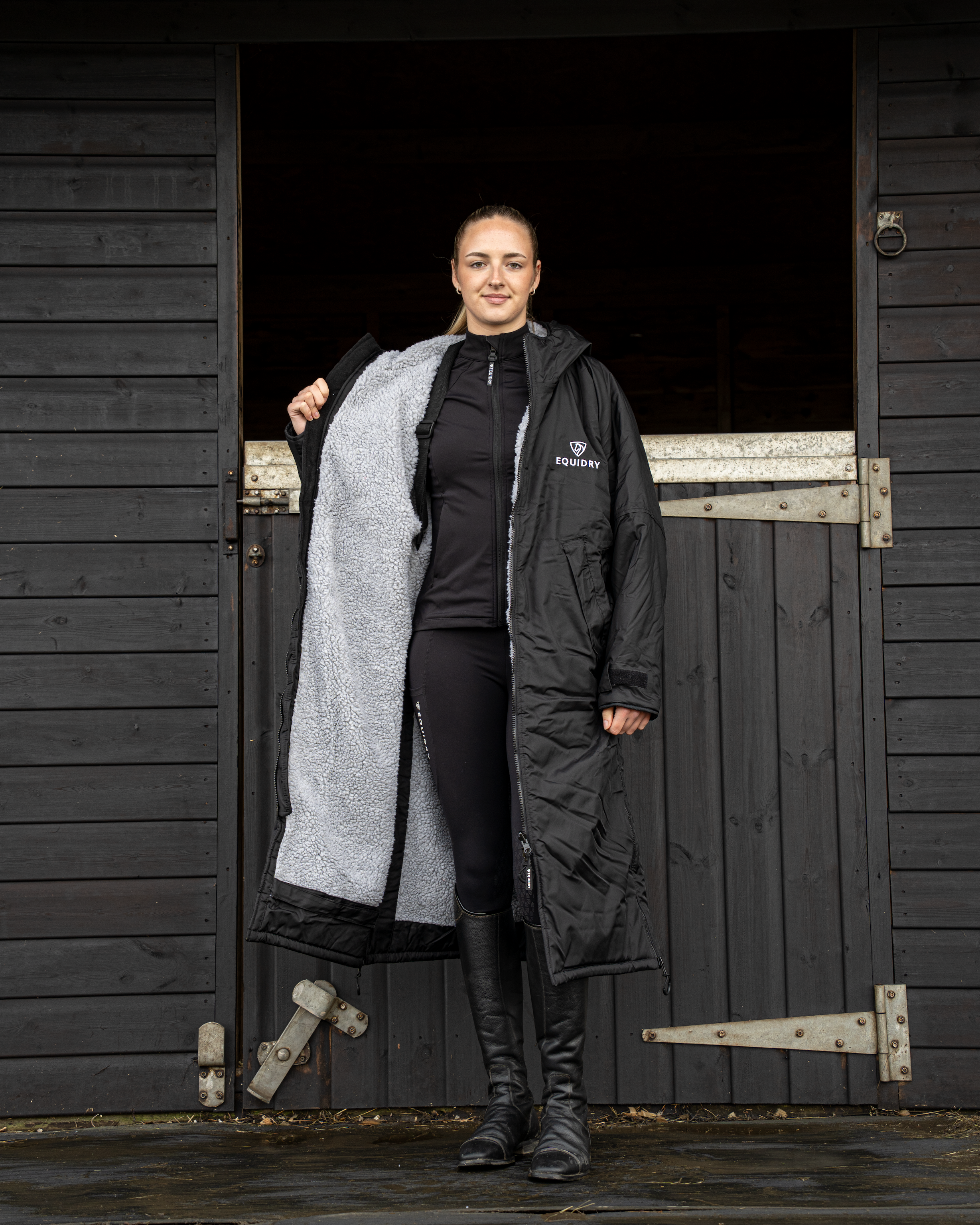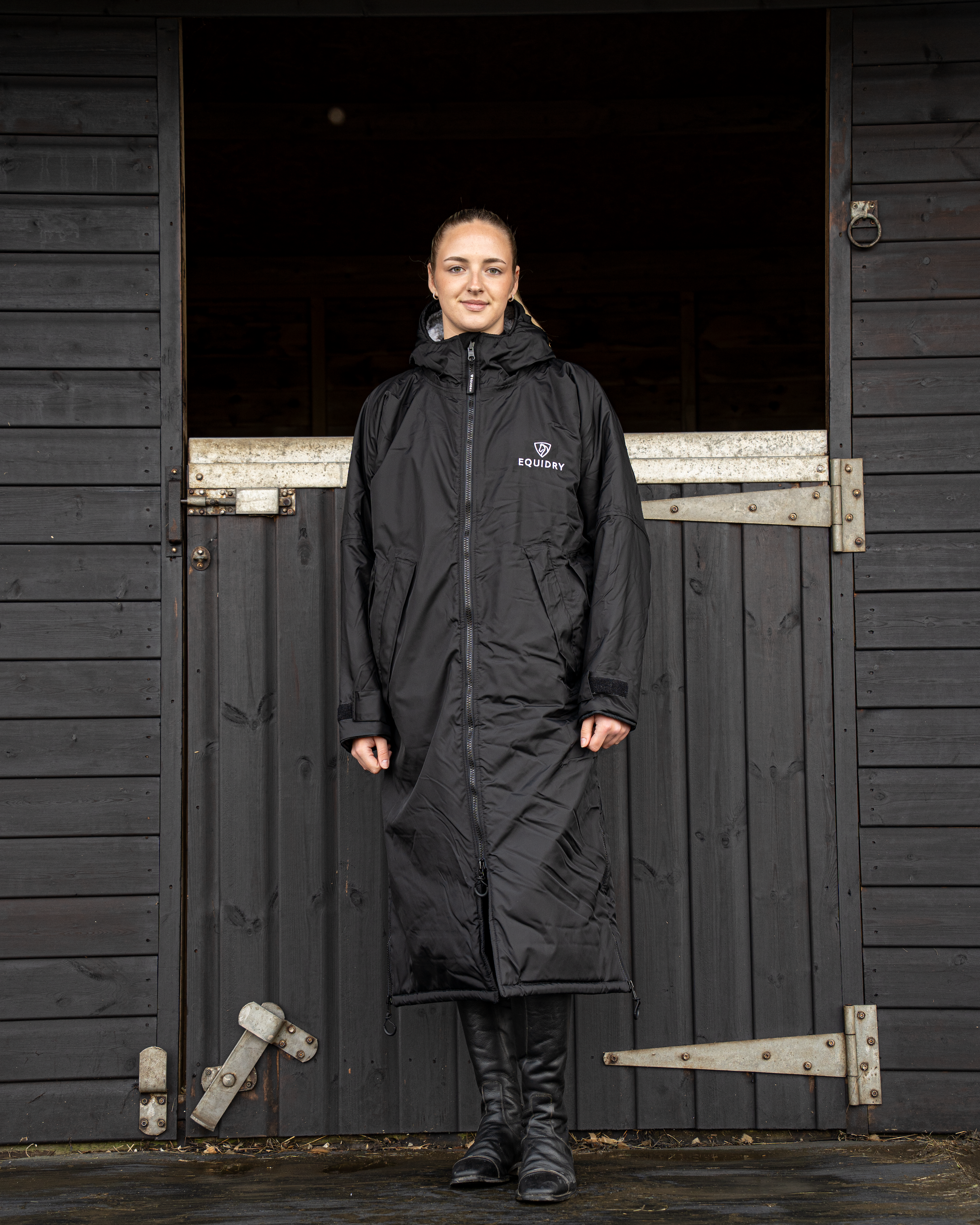 The EQUIDRY Original All Rounder has been designed to be oversized, which allows it to easily fit over the top of body protectors, competition wear and other clothing, and is a long-length coat, ensuring full body coverage. Riders love these jackets, but they are also the perfect companion for anyone who loves the great outdoors. Whether you are watching friends at a show, working around the yard, walking the dogs or going for a hike across the moors, the EQUIDRY Original All Rounder is a must-have to keep you warm, dry and comfortable!