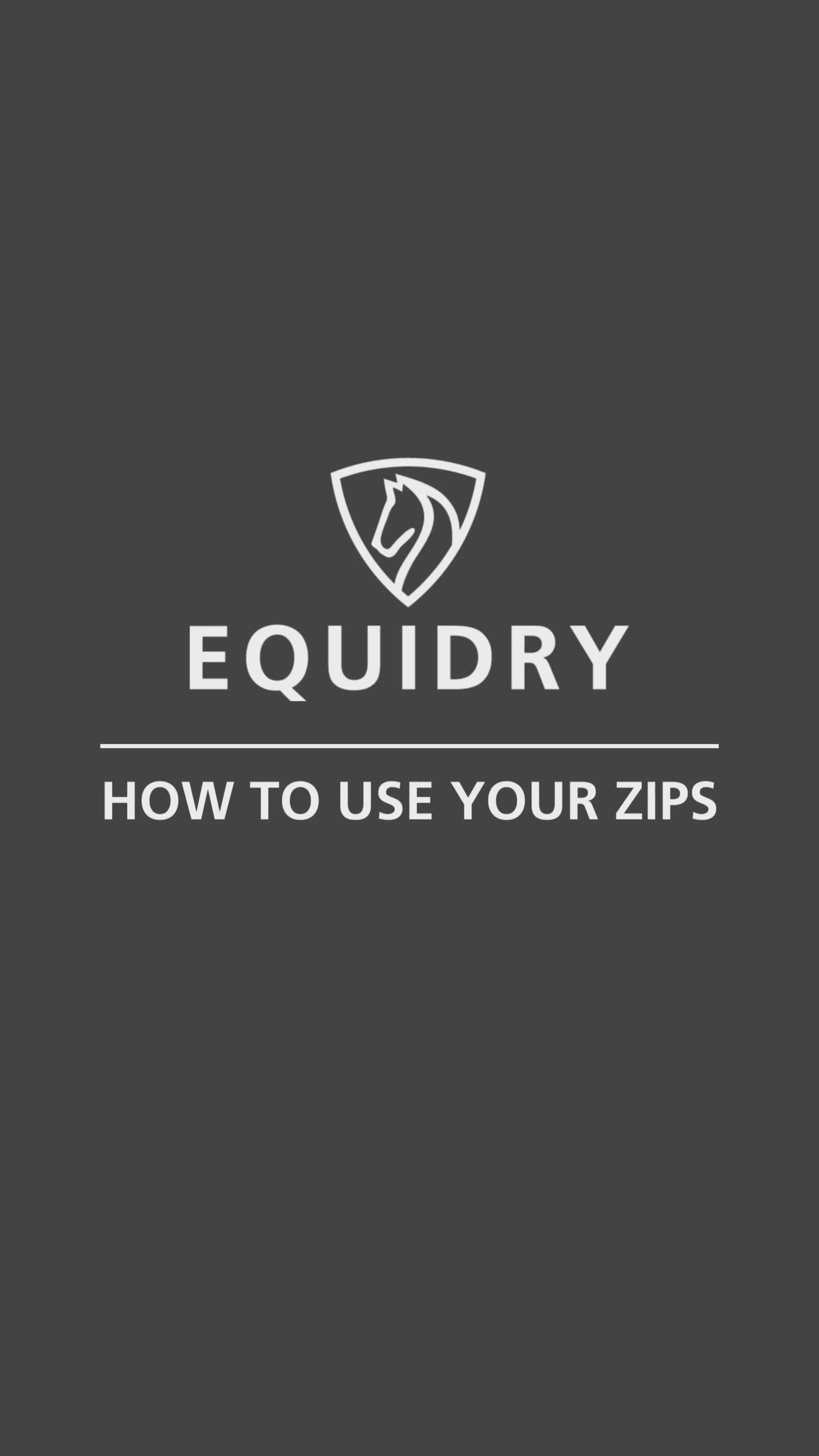 How to use your two way zip: when mounting or dismounting in your EQUIDRY coat, fully open the side zips and unzip the front to naval height. Always unzip before sitting or bending to avoid pressure on the zip.